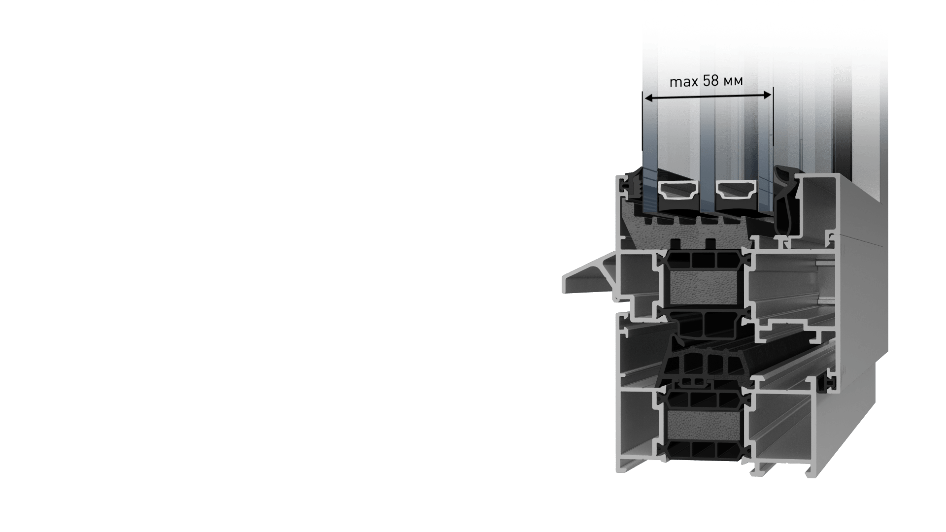 Внутренняя видимая ширина профилей | 50, 60, 80 мм |