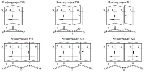 В зависимости от предпочтений клиента, конструкции доступны для заказа в двух вариантах исполнения – открытием наружу или во внутрь. Вариативность направлений складывания створок обеспечивается за счет разворота рамного профиля, а также заменой последовательности установки петель на створки. В любом из вариантов исполнения штапики створок устанавливаются со стороны помещения – соответствие требованиям противовзломной безопасности.